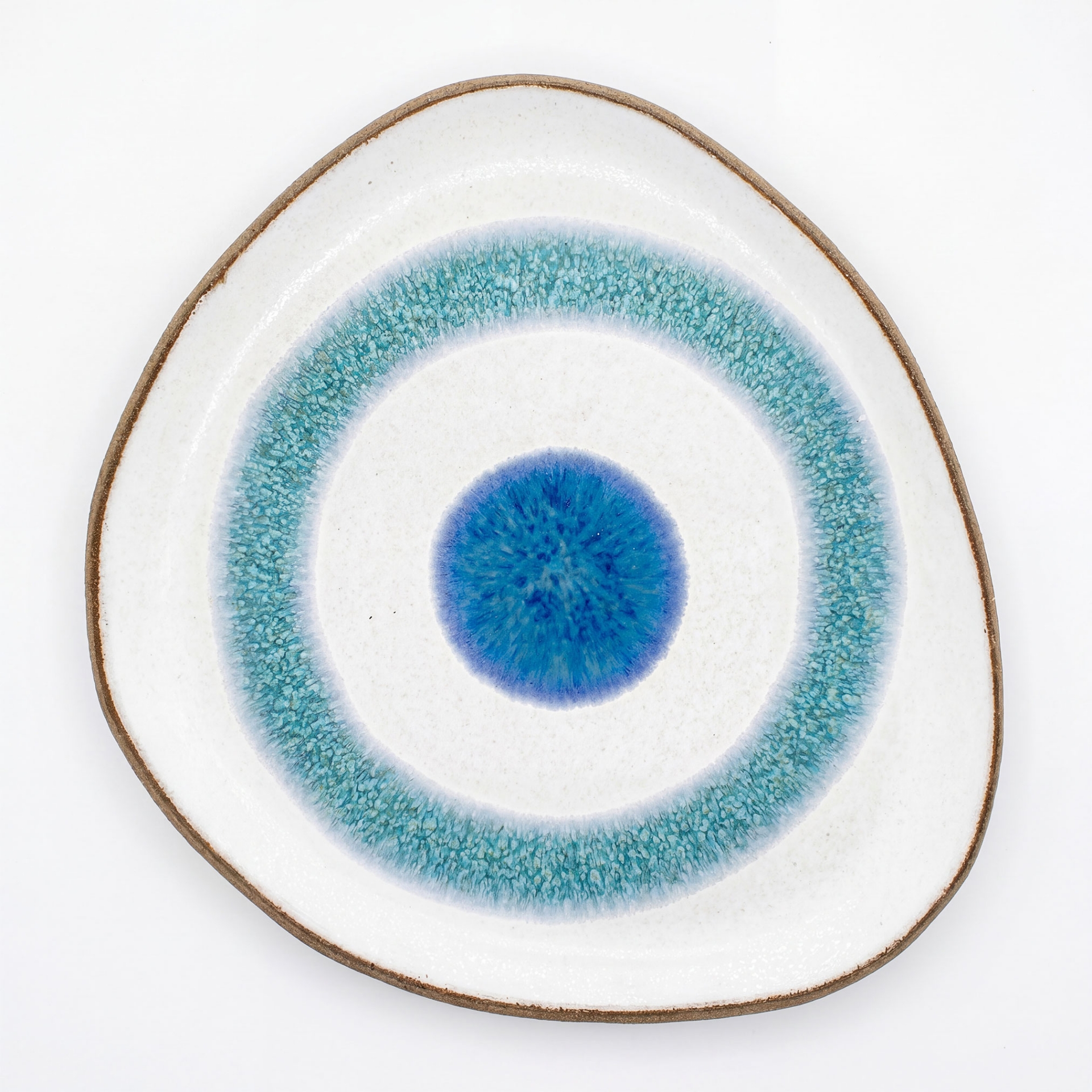 에게해의눈 수제 세라믹 접시는 그리스 전통 도자기 기법으로 제작된 프리미엄 스톤웨어 식기입니다. 공장 틀을 사용하지 않고 장인이 직접 손으로 빚어 만든 유기적 형태의 접시에 에게해의눈 문양을 손그림으로 그려넣었습니다. 일상 식탁은 물론 특별한 손님 접대용 그릇으로도 손색없는 작품입니다.