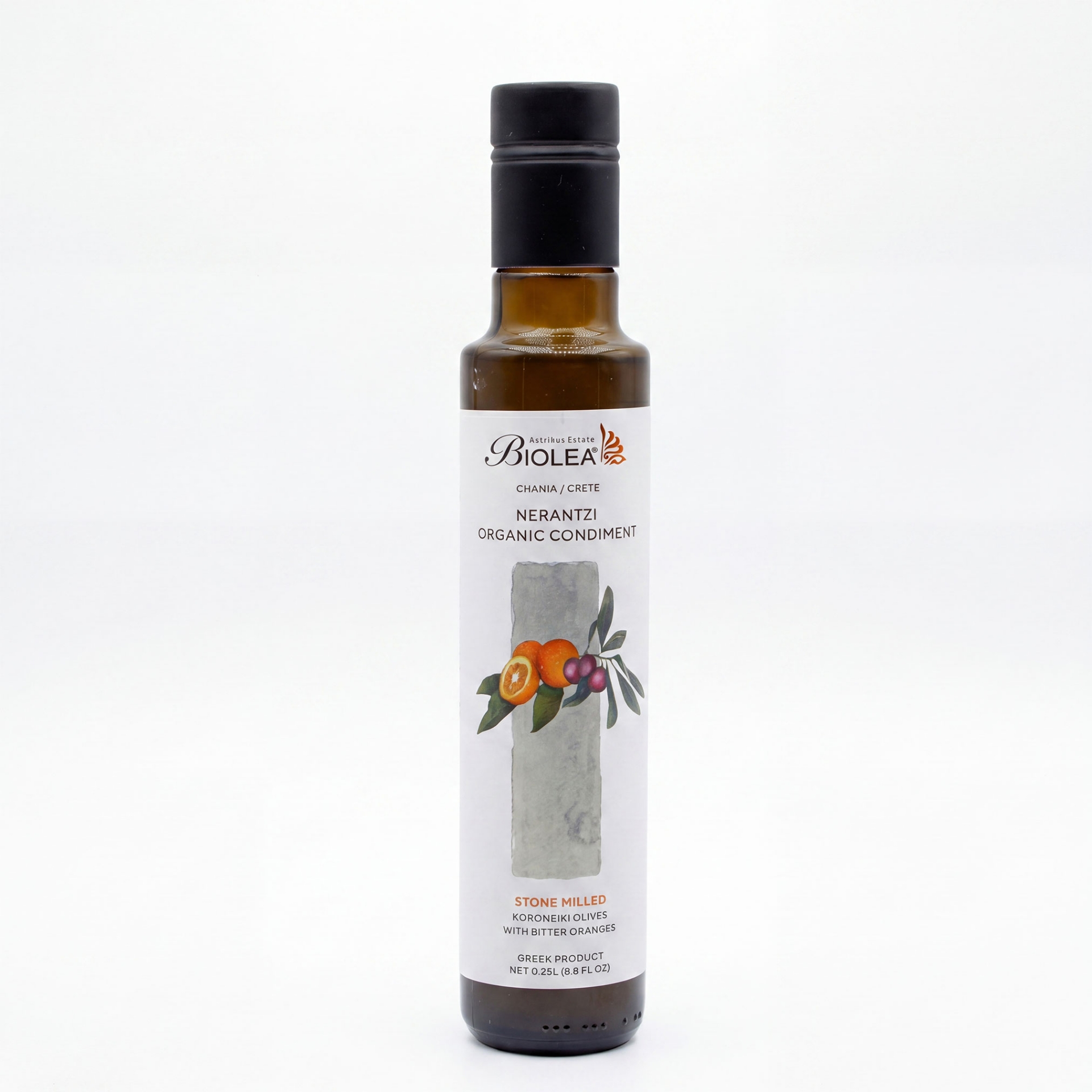 비올레아 네란치오는 크레타섬 하니아에서 유기농으로 재배하고, 돌절구로 갈아 냉압착한 엑스트라 버진 올리브 오일로, 신선한 쓴 오렌지를 함께 넣어 만듭니다. 디저트와 렌틸콩 요리에 잘 어울립니다.